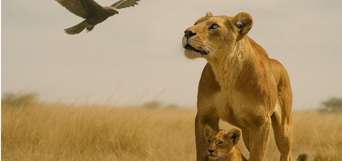 Savana je drhtala od vrućine. Vazduh je bio gust, težak kao med, a zemlja je mirisala na prašinu i sunce.Lavica je ležala u senci akacije, poludremala, slušala kako