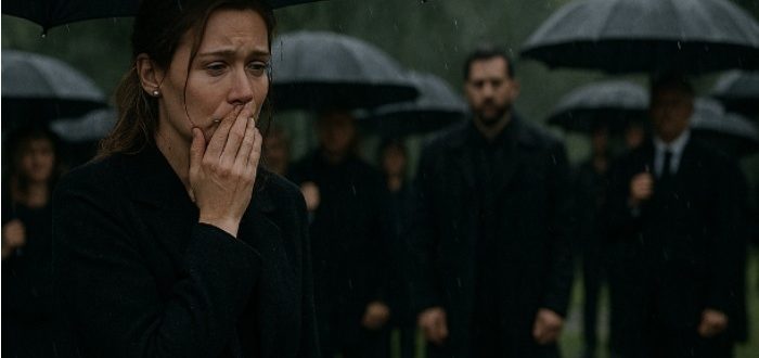 Sahrana je bila tiha. Sitna kiša je padala, kapi su lupkale po crnim kišobranima, a žalobna muzika dopirala je prigušeno, kao iz daljine. Emy je stajala pored kovčega,
