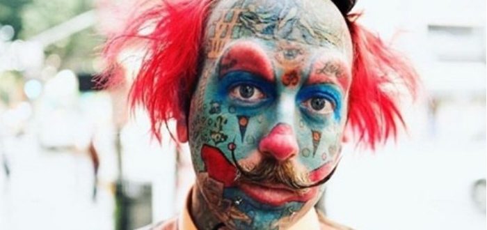 Izgleda kao lik iz cirkusa, ali sanja da služi u crkvi. 🤡 Tridesetsedmogodišnji Riči Esposito, poznat kao Riči-berberin, istetovirao je lice klovna na svom licu i sada se