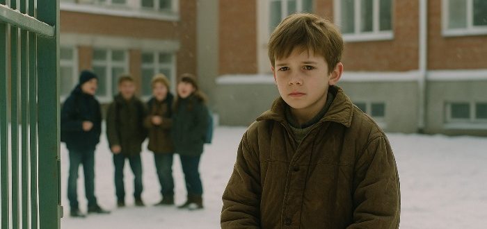 Stajao je ispred školskih kapija, zakopčavajući staru jaknu sa iskrivljenim rajsferšlusom.Tkanina je bila izlizana, okovratnik pohaban, a rajsferšlus držao se na koncu.Ali jutro je bilo vedro — sunce