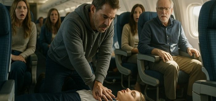 Ona se srušila pravo u prolazu. Avion je tek uzletao kada se čuo vrisak. Stjuardesa, koja je pre sekundu delila pića, pala je bez glasa između redova. Metalna