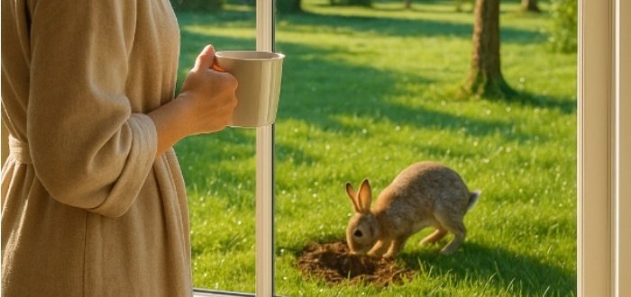 Jutro je bilo prozračno i toplo.Sunce se polako dizalo nad starim voćnjakom jabuka, a u vazduhu se osećao miris mokre trave, nane i nečeg blago slatkastog — kao
