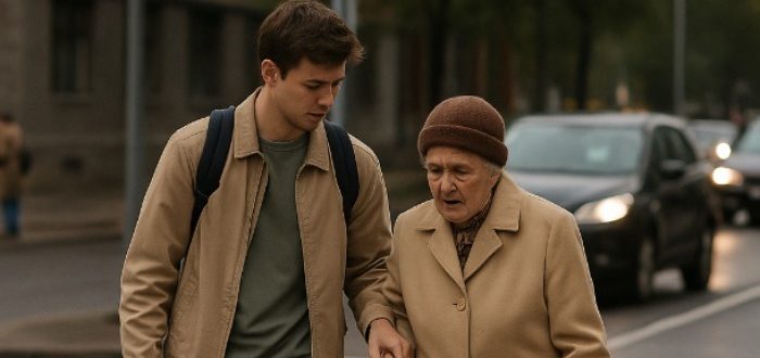 Saobraćaj je stajao. Večernji grad je brujao, automobili su trubili, neki su žurili kući, drugi listali telefone čekajući zeleno svetlo. Na pešačkom prelazu stajala je žena — oko