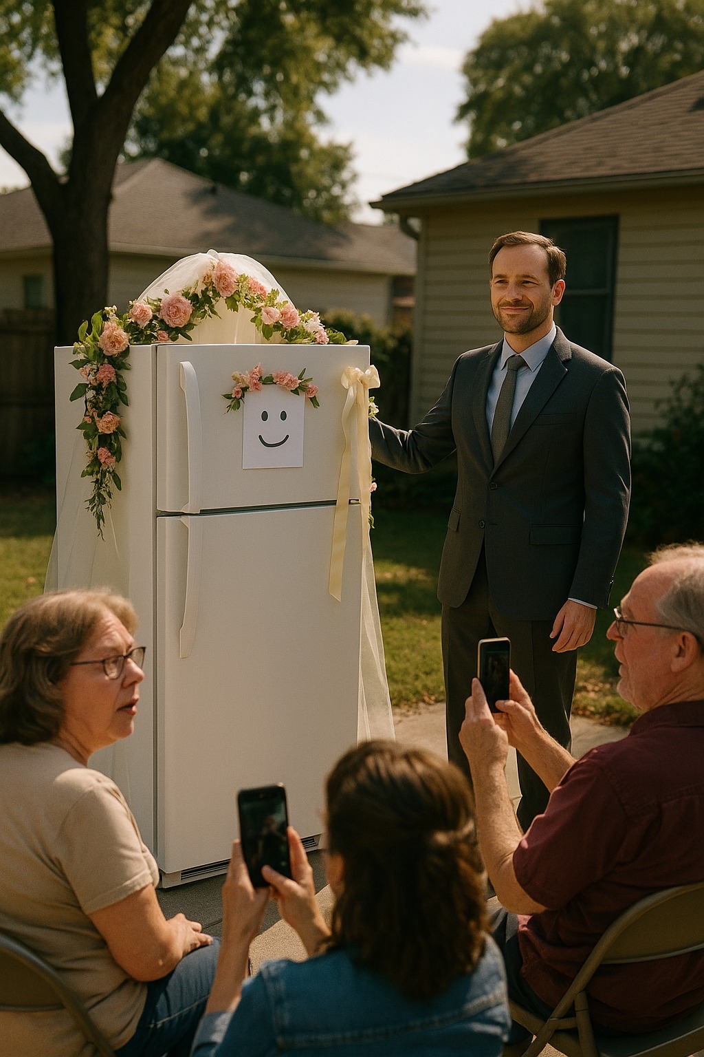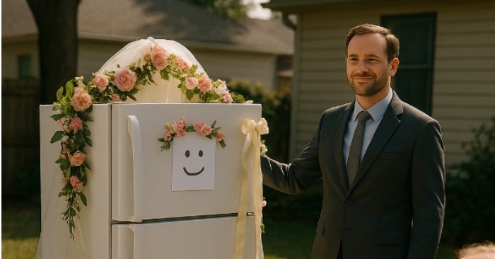 U početku su komšije mislile da je šala. Čovek iz ulice napravio je ceremoniju u dvorištu, sa prstenjem, zavetima i sveštenikom koji je izgledao jednako zbunjeno kao i gosti. Ali mladoženja se nije ženio osobom. Oženio se svojim frižiderom.