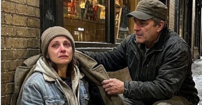 Pružio sam mu jednu od torbi za kupovinu. Zatim, bez razmišljanja, skinuo sam kaput – onaj topli koji mi je Elenor kupila godinama ranije – i prebacio ga preko njegovih ramena.