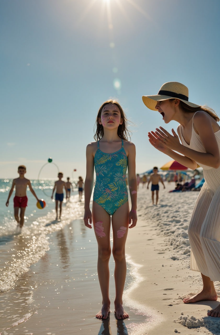 Stajala je bosa, nasred peska, pod suncem koje je jednako sijalo za sve — a samo za nju nije bilo mesta pod tim svetlom.