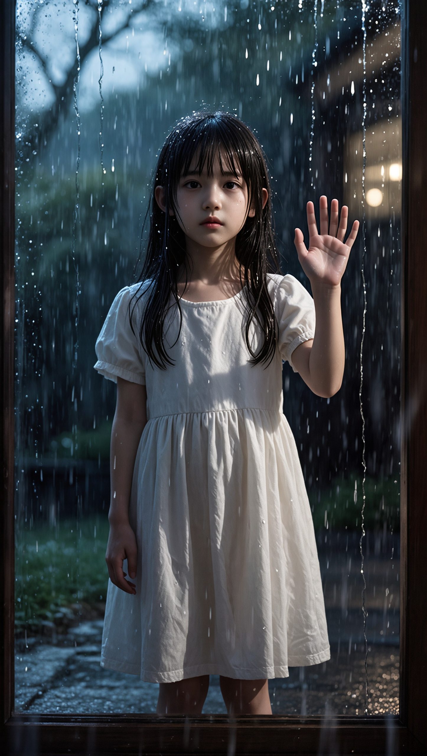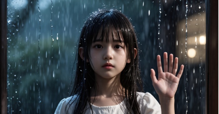Napolju je stajala mala devojčica, obasjana bledim svetlom sa trema. Kosa joj je visila u mokrim pramenovima, a bela haljina lepila se za njeno sitno telo kao da ju je uhvatio pljusak. Nije imala više od osam godina.