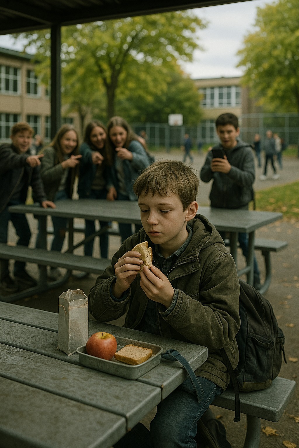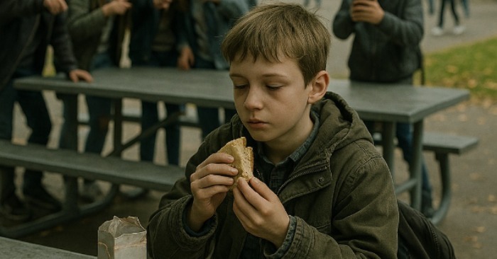— Ozbiljno? Ručaš iz tetrapaka iz đubreta? — rugao mu se jedan stariji učenik. — Šta je sledeće, kašika od flaše?