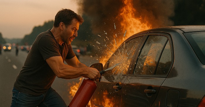 Izašao je iz kola, zgrabio protivpožarni aparat.