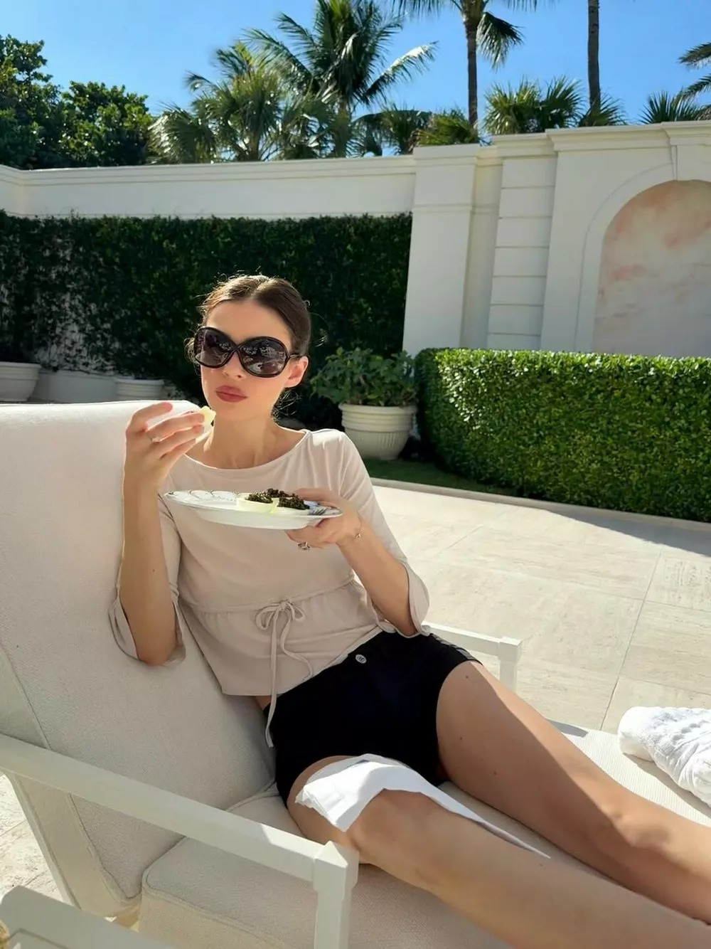 U utorak, 30. decembra, 30-godišnja glumica je ponudila uvid u njihovo utočište na Floridi, deleći opuštenu fotografiju sa prostranog porodičnog imanja vrednog 80 miliona dolara. Na snimku, Pelc se bez napora opuštala u prevelikim naočarima za sunce, crnim šorcevima i širokoj bluzi – mirna, smirena i veoma kao kod kuće. Rekla je pratiocima koliko ceni što je „kod kuće“ nakon što je završila snimanje svog najnovijeg projekta.