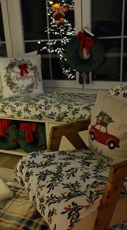 Pored jelke, praznični kutak krase bezbroj ukrasnih jastuka, mašni, kao i svetleći fenjer u obliku kočije, koji prostoru daje dodatnu dozu čarolije. Sve odiše toplinom, elegancijom i pažljivo građenom atmosferom.