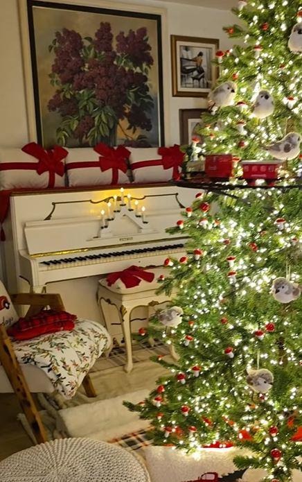 Lidija je otkrila da je svaki detalj sama osmislila, ne prepuštajući ništa slučaju. Centralno mesto u dnevnoj sobi zauzima visoka, raskošna jelka prepuna lampica, ali jedan detalj je posebno privukao pažnju — voz koji kruži oko jelke, nešto što do sada gotovo niko nije video u domaćim domovima.