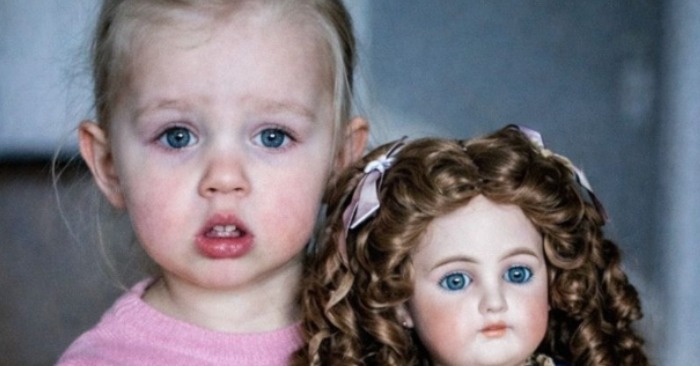 Njeno lice je bilo čudno. Njene jarko plave oči bile su otvorene, a u naručju je ležala manja lutka.