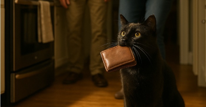 Isprva je Sara pomislila da je to samo još jedna igračka ili možda rukavica. Ali kada je mačka spustila predmet na pod uz tup zvuk, želudac joj se stegao. Nije bila igračka. Bio je to mali kožni novčanik.
