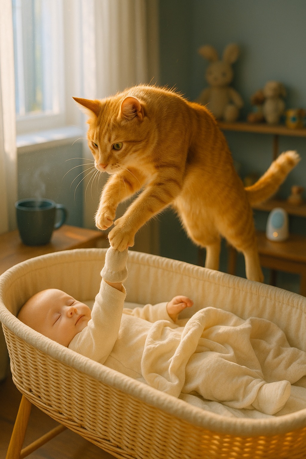 U kući je živela mačka po imenu Mira — tigrasta, mirna, uvek blizu bebe. Od kada su doneli dečaka iz bolnice, nije se odvajala od njegovog kreveta. Lena je ponekad šalila: