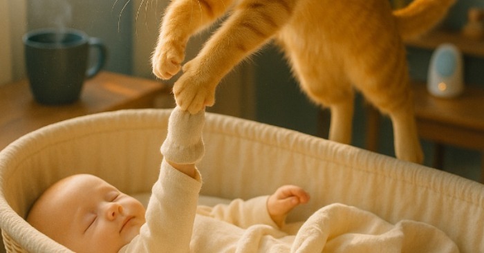 U kući je živela mačka po imenu Mira — tigrasta, mirna, uvek blizu bebe. Od kada su doneli dečaka iz bolnice, nije se odvajala od njegovog kreveta. Lena je ponekad šalila: