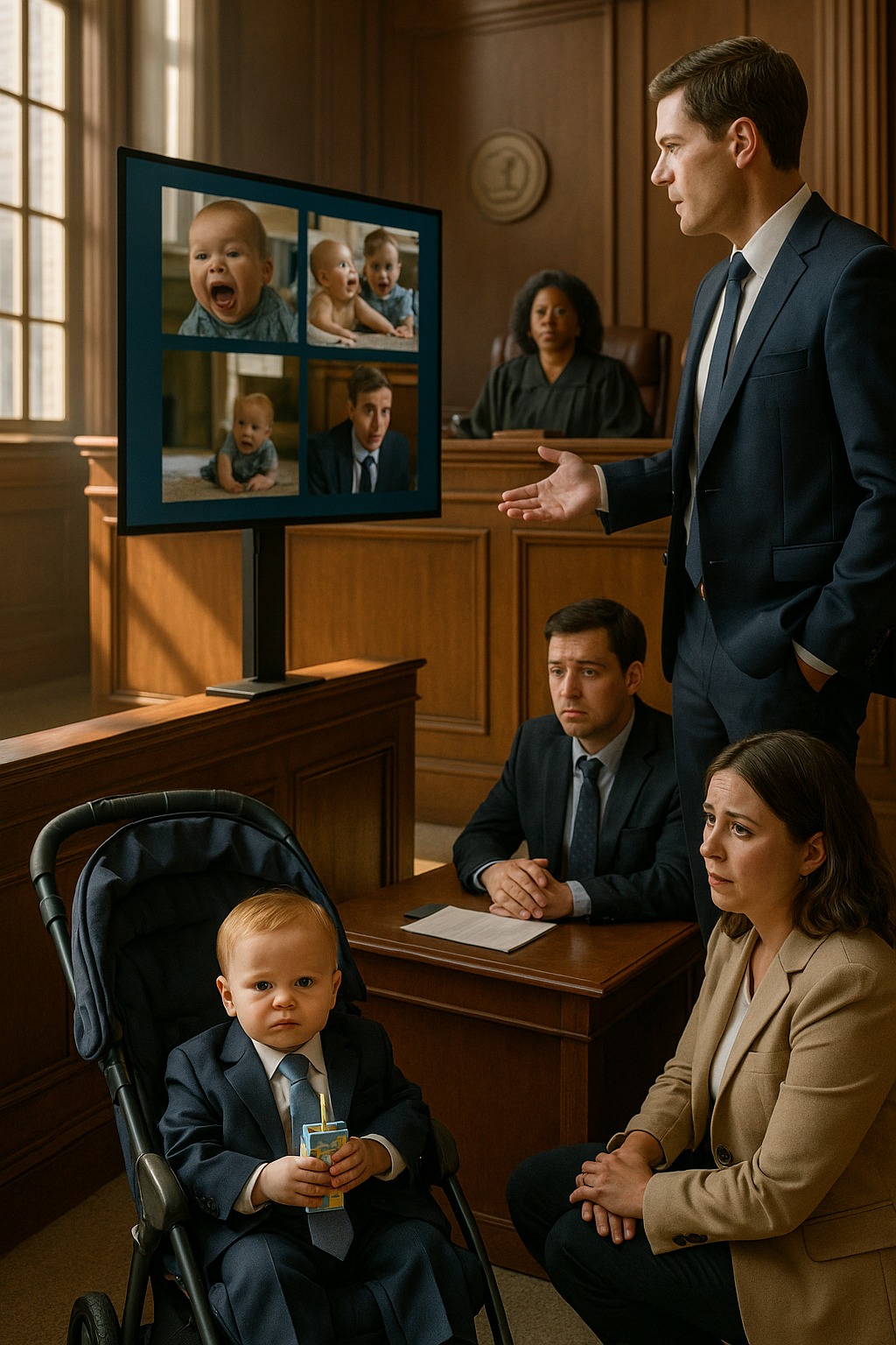 Slučaj je u početku odbačen kao tipfeler. Kada je sudski službenik pročitao naglas tužbu, svi su se nasmejali — „Mališan tuži svoje roditelje.“ Ali nije bila greška. Dokumentacija je bila ispravno podneta, potpisi verifikovani, a tužilac, trogodišnji dečak u prevelikom odelu, uveden je u sudnicu dok je u ruci držao sok.