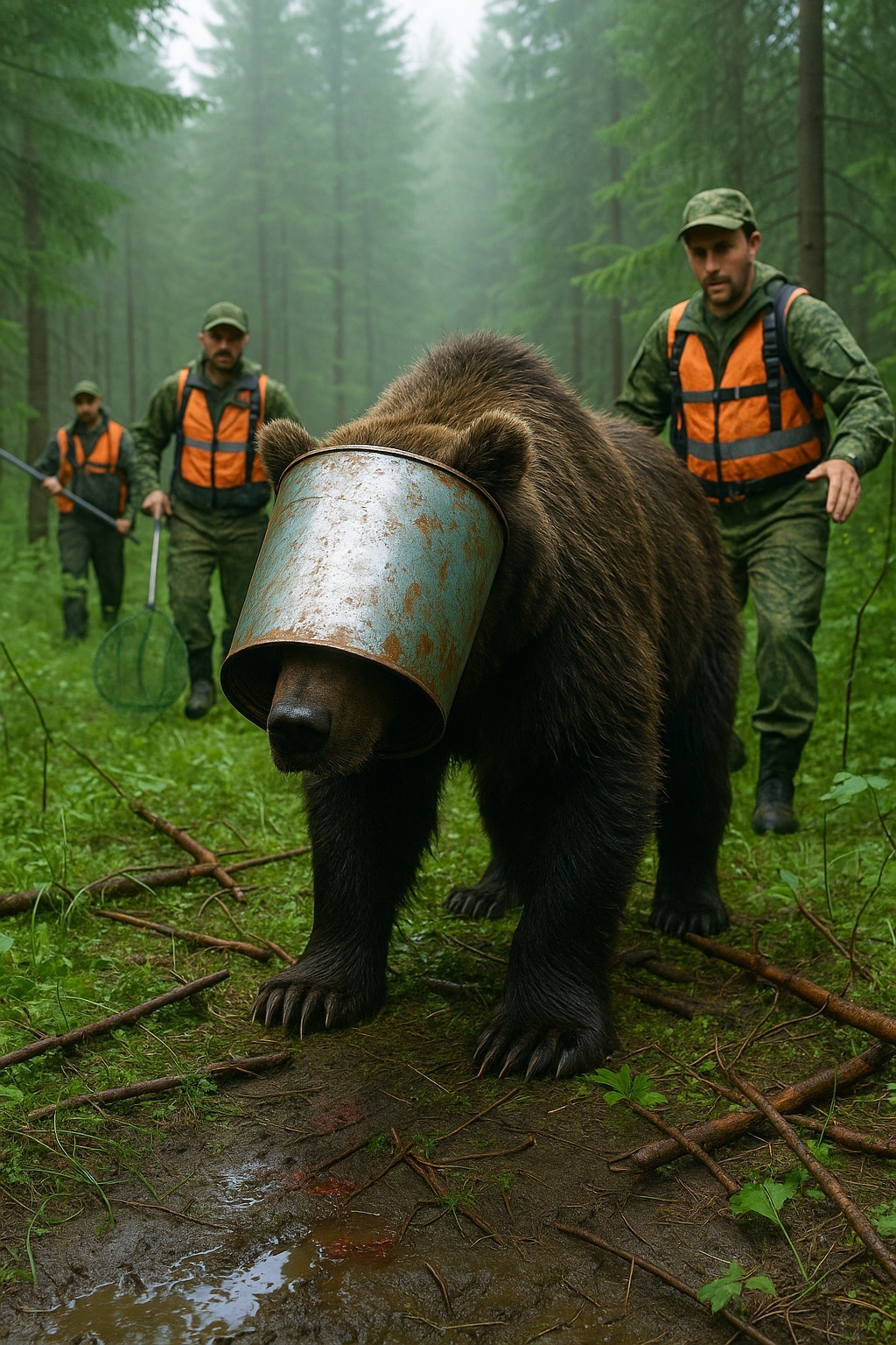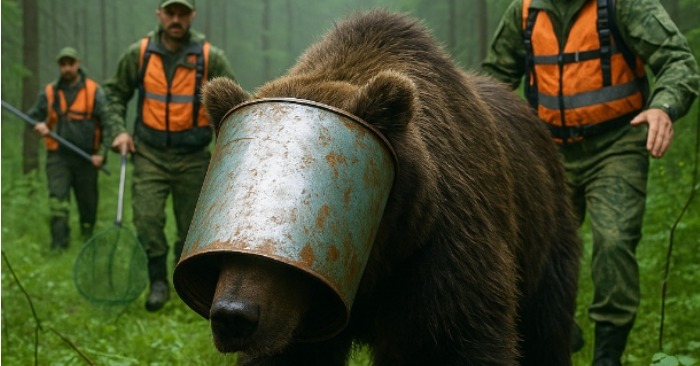 Nekoliko dana kasnije, pojavila se snimka: medved sa metalnom kantom na glavi ide pored reke, spotiče se i pada. Ljudi su mislili da je šala, ali su lovci potvrdili istinu.