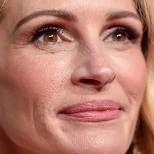 Džulija je poznata po svom “sunčanom” izrazu, pa joj mimičke bore samo dodaju šarm. U makro planu šminka izgleda prirodno; jedini diskutabilan detalj — previše definisane i izdužene obrve. Ali to voli još od devedesetih — njen zaštitni stil.
