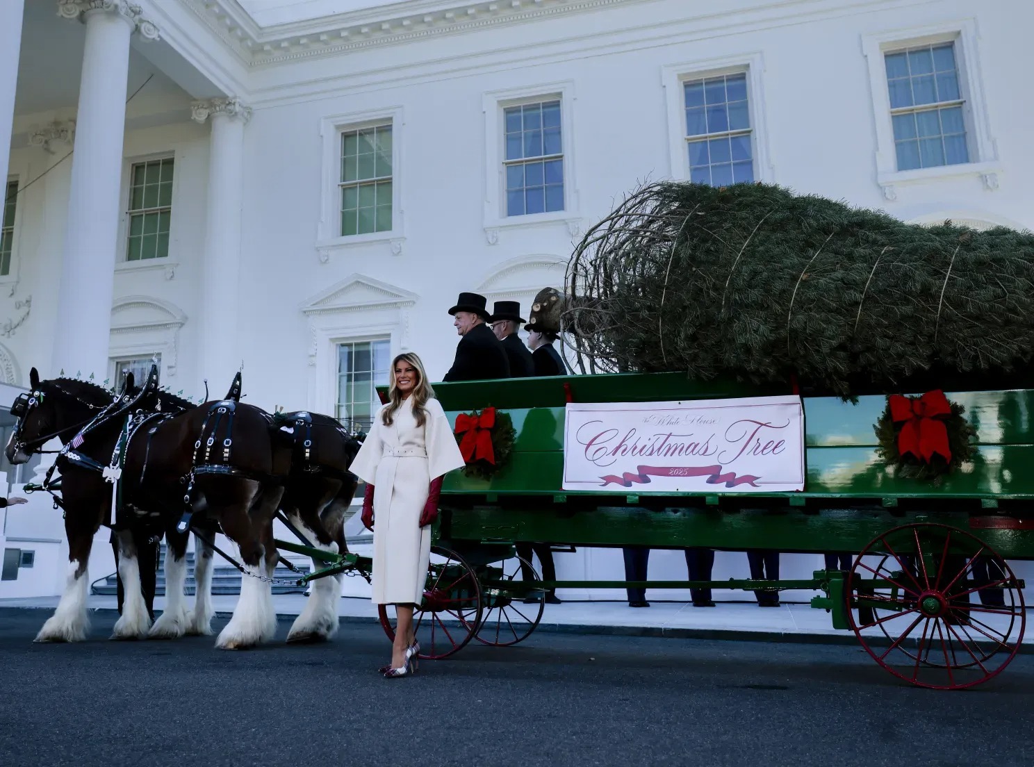 Prvi je bio tradicionalni prijem božićne jelke, koji svake godine otvara sezonu zimskih praznika. Melanija se pojavila u elegantnom belom Dior kompletu, koji je ukrasila bordo kožnim rukavicama.