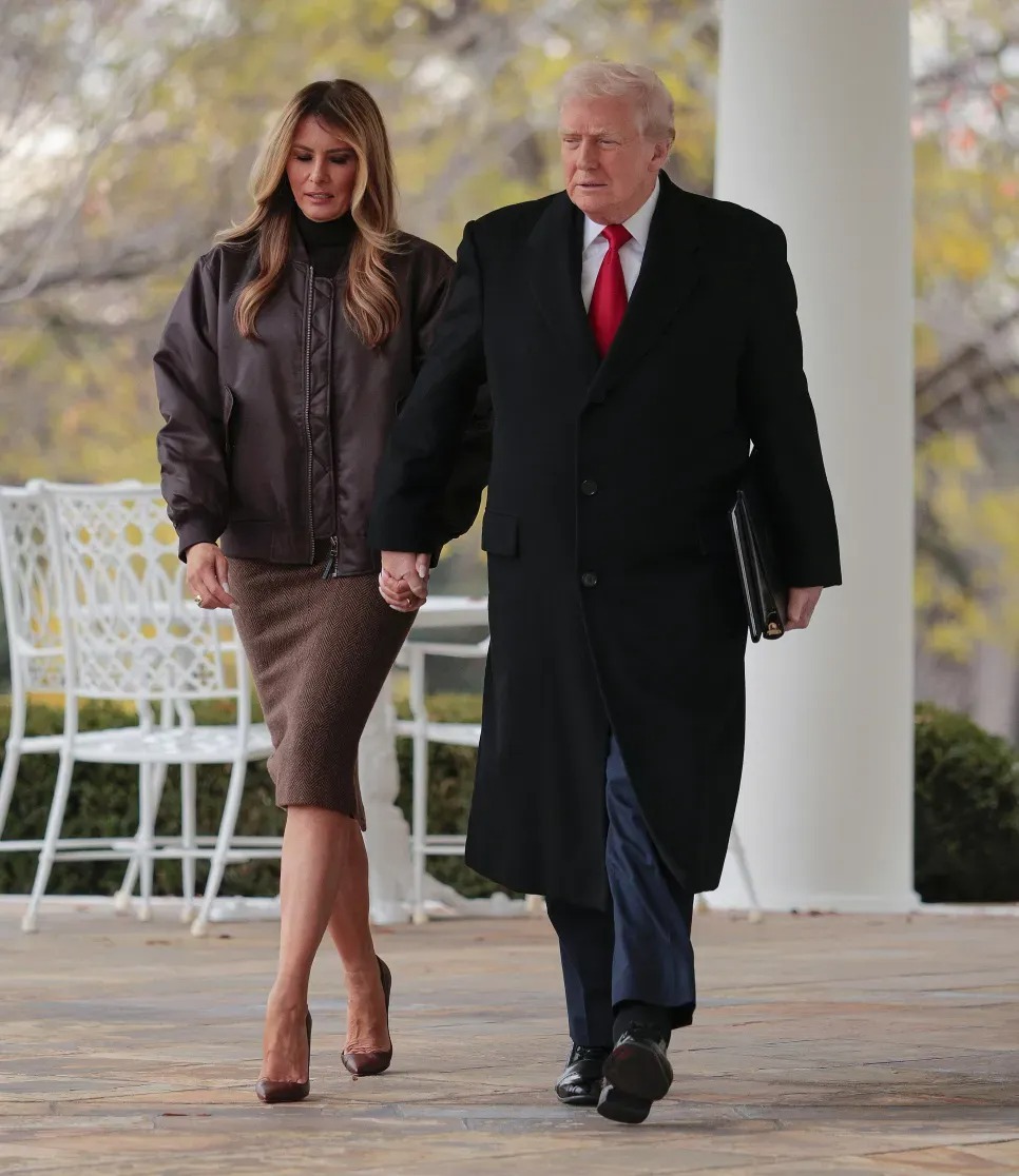 Za taj događaj Melanija je odabrala topao braon total look: rolka, suknja olovka, bomber i cipele u istom tonu. Izgled je bio suzdržan, ali izuzetno skladan.