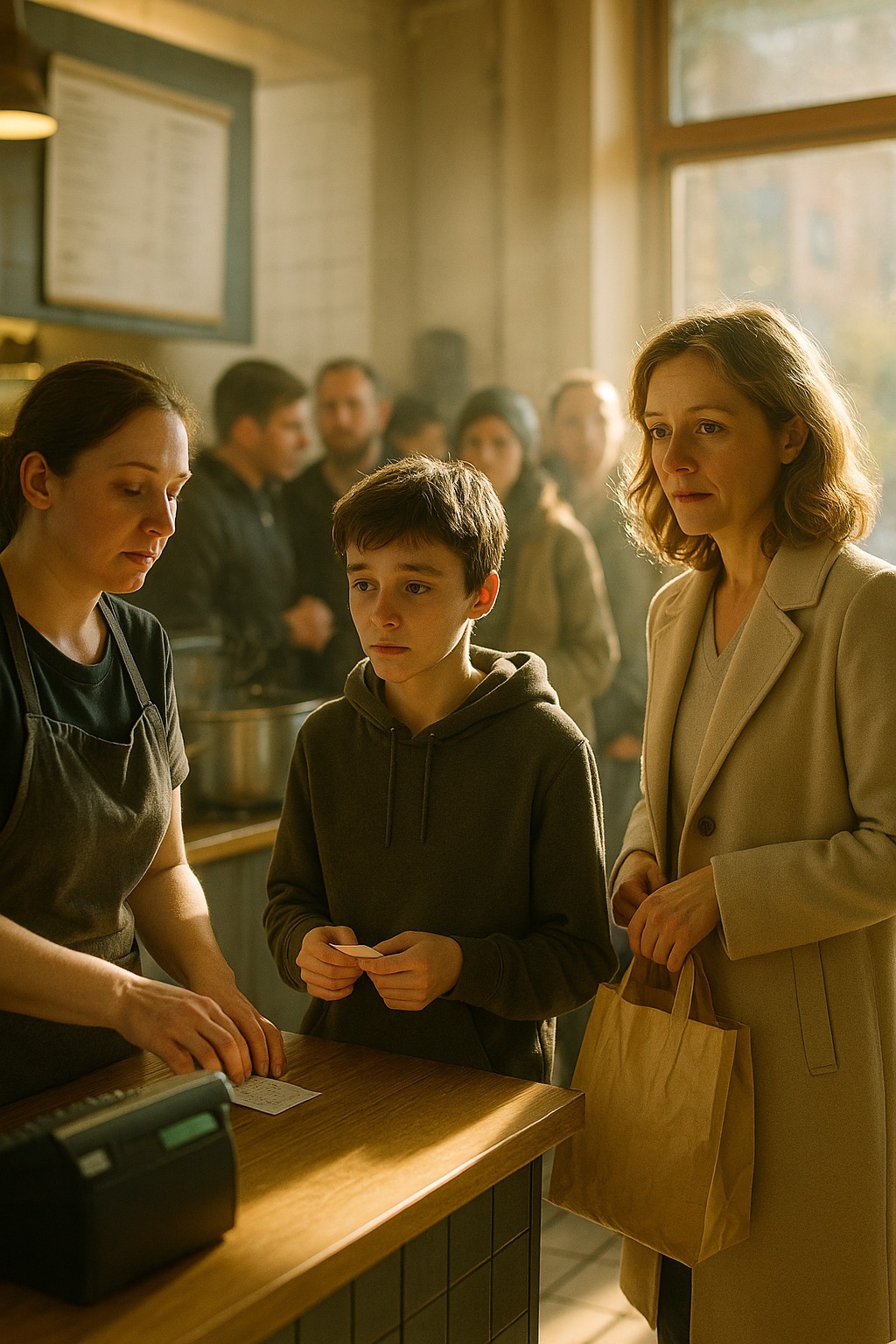 Stajala je u redu, umorna posle smene, s kesom namirnica u rukama.