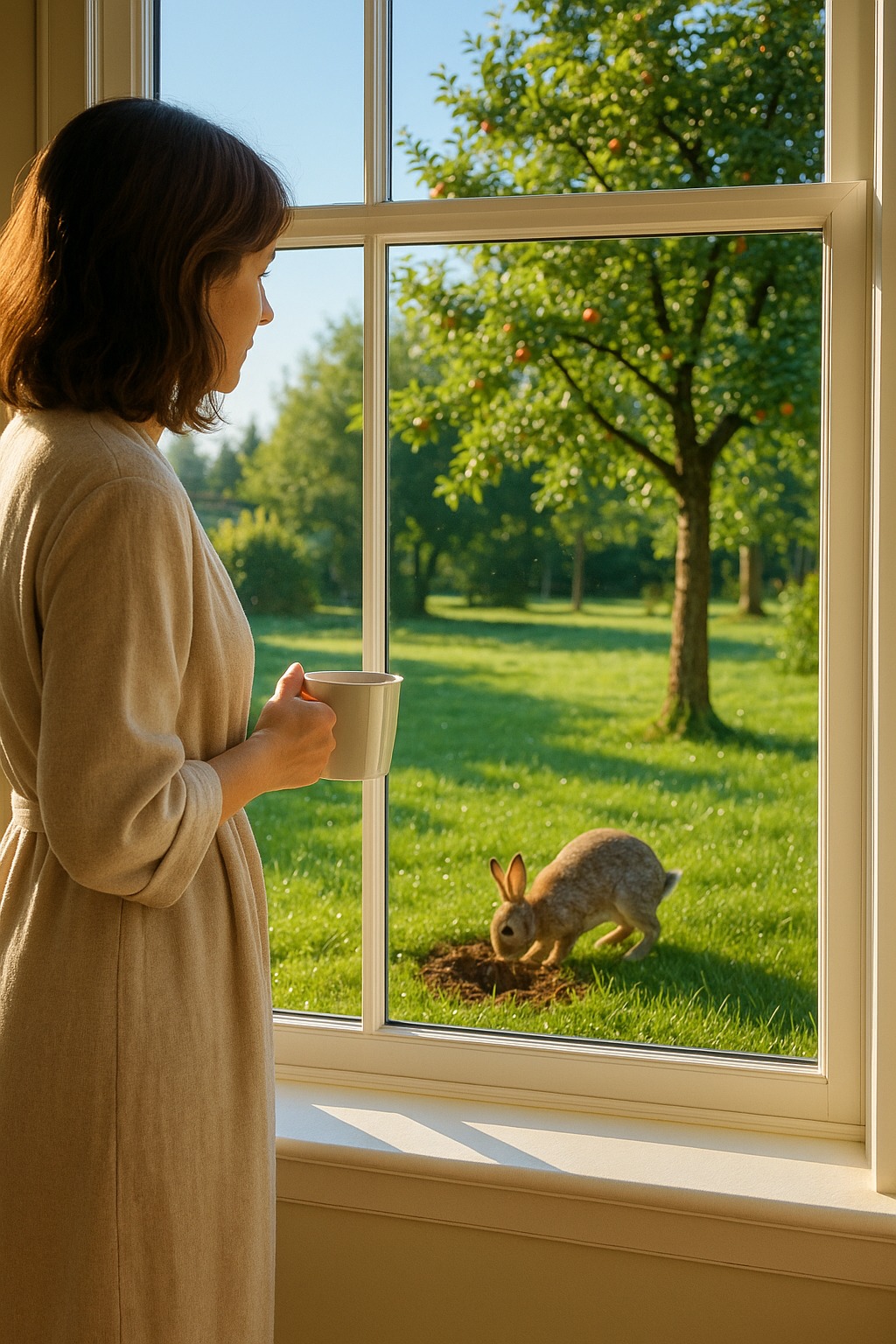 Ana je stajala kraj prozora s šoljom kafe kad je primetila da zec kopa zemlju ispod cvećnjaka.