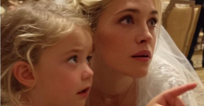 Posle ceremonije, ćaskala sam sa gostima kada sam osetila kako neko nežno vuče rub moje haljine.