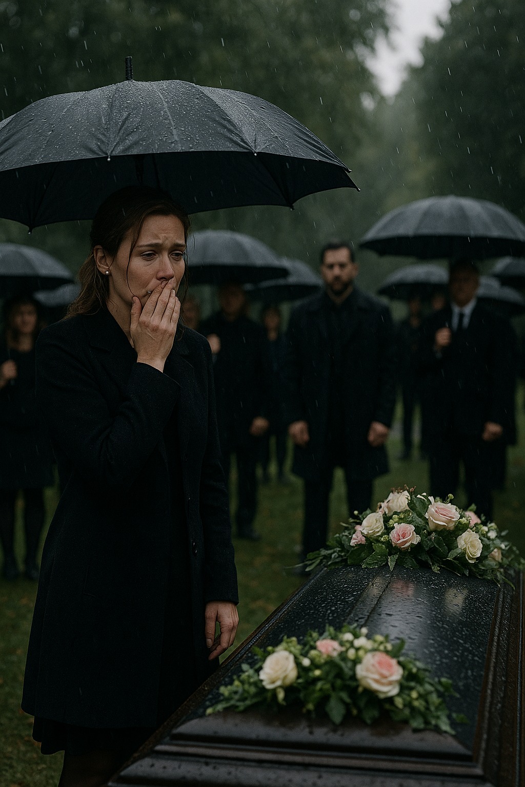 Sahrana je bila tiha. Sitna kiša je padala, kapi su lupkale po crnim kišobranima, a žalobna muzika dopirala je prigušeno, kao iz daljine. Emy je stajala pored kovčega, stegnutih ruku — nije plakala, samo je gledala u jednu tačku. Muž joj je poginuo iznenada: nesreća, trenutno, bez ikakve šanse za spas.