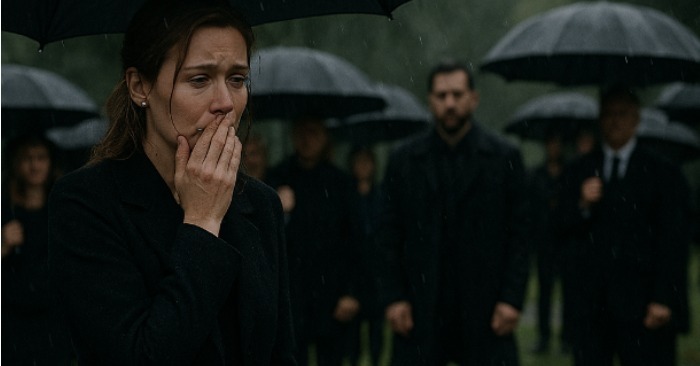 Sahrana je bila tiha. Sitna kiša je padala, kapi su lupkale po crnim kišobranima, a žalobna muzika dopirala je prigušeno, kao iz daljine. Emy je stajala pored kovčega, stegnutih ruku — nije plakala, samo je gledala u jednu tačku. Muž joj je poginuo iznenada: nesreća, trenutno, bez ikakve šanse za spas.