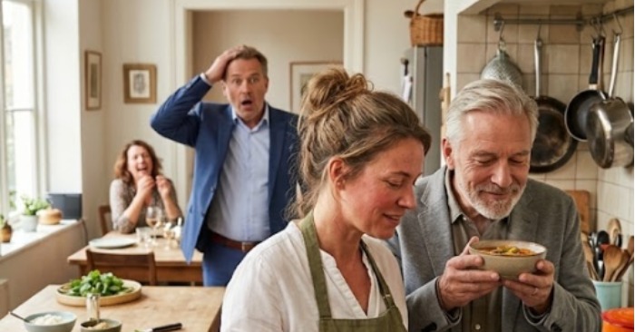 „Ona je samo… moja žena“, rekao je brzo. „Kuva iz hobija…“
