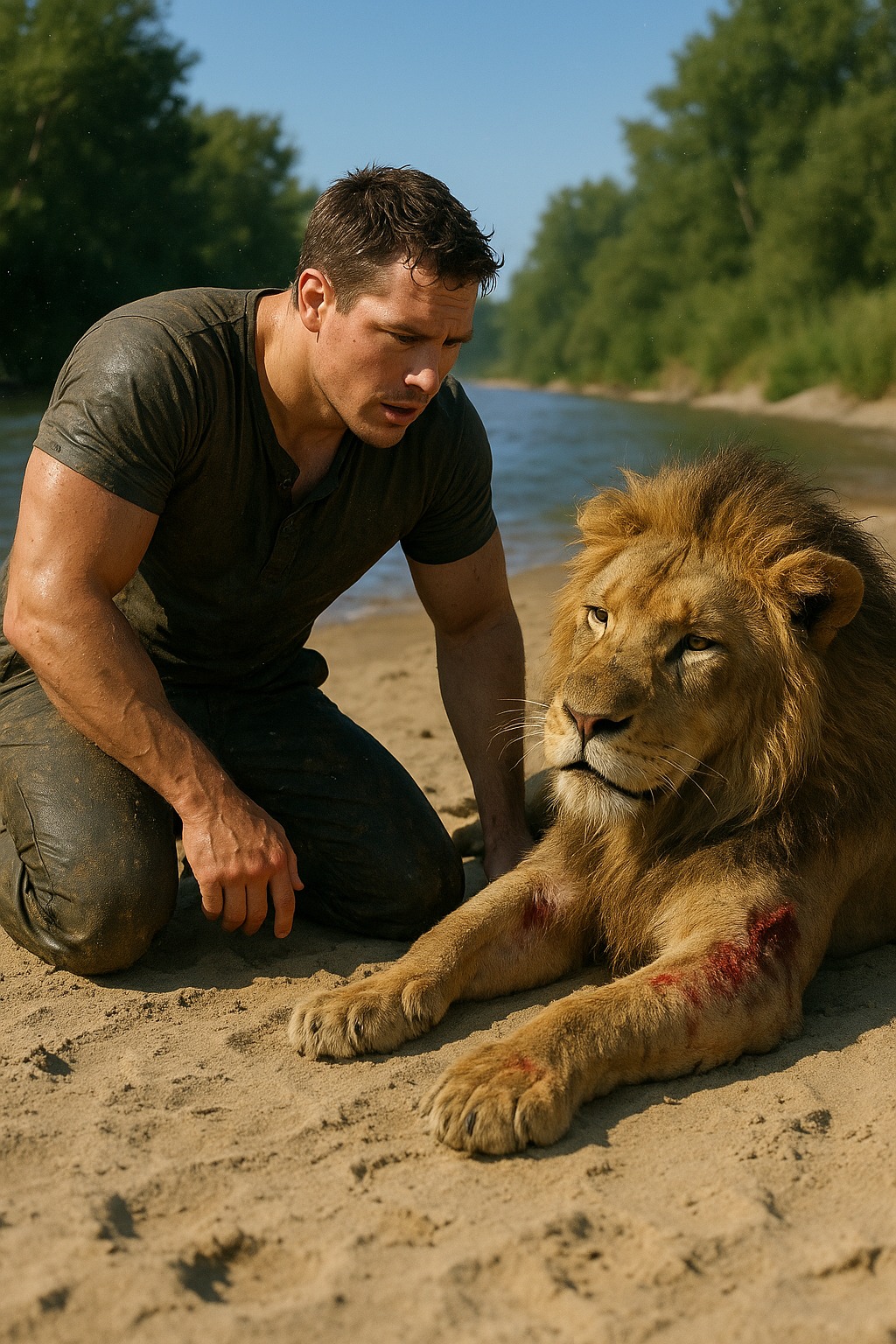 Na pesku su ostale dve staze otisaka — ljudske i životinjske, jedna pored druge, isprepletane, kao dokaz da strah i poverenje ponekad mogu ići istim putem.