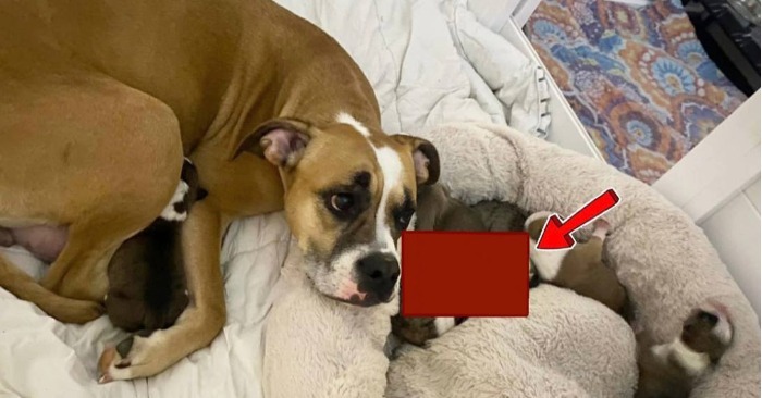 Kanadski buldog Freja okotila je osam štenaca — ali jedno od njih rođeno je sa retkim zelenim krznom.