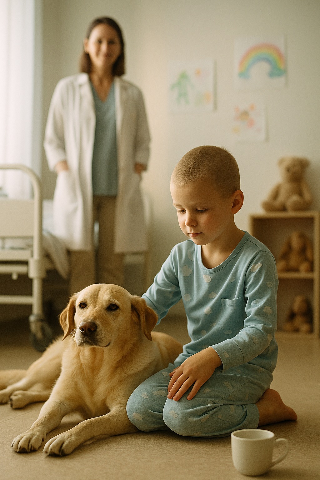 Sada Marli ide belim hodnicima s crvenom ogrlicom i pločicom „Terapeut“.