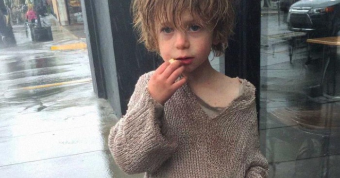 Mali dečak je stajao ispred kafića pod nazivom „Ćošak pasulja“. Nije mogao biti stariji od sedam ili osam godina. Njegov džemper je bio tanak i pocepan na jednom laktu. Farmerke su mu se vlažno lepile za tanke noge, a cipele su izgledale kao da su odavno odustale od pokušaja da stanu.