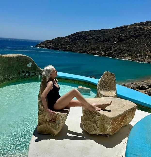Trenutno uživa na odmoru u Grčkoj i nedavno je podigla mreže svojim fotografijama na kojima pozira uz tirkizno more i veličanstvene planine. Na sebi je imala crni jednodelni kupaći kostim i pokazala vitke noge. Mnogi se pitaju kako i dalje izgleda tako besprekorno iako je majka troje dece.