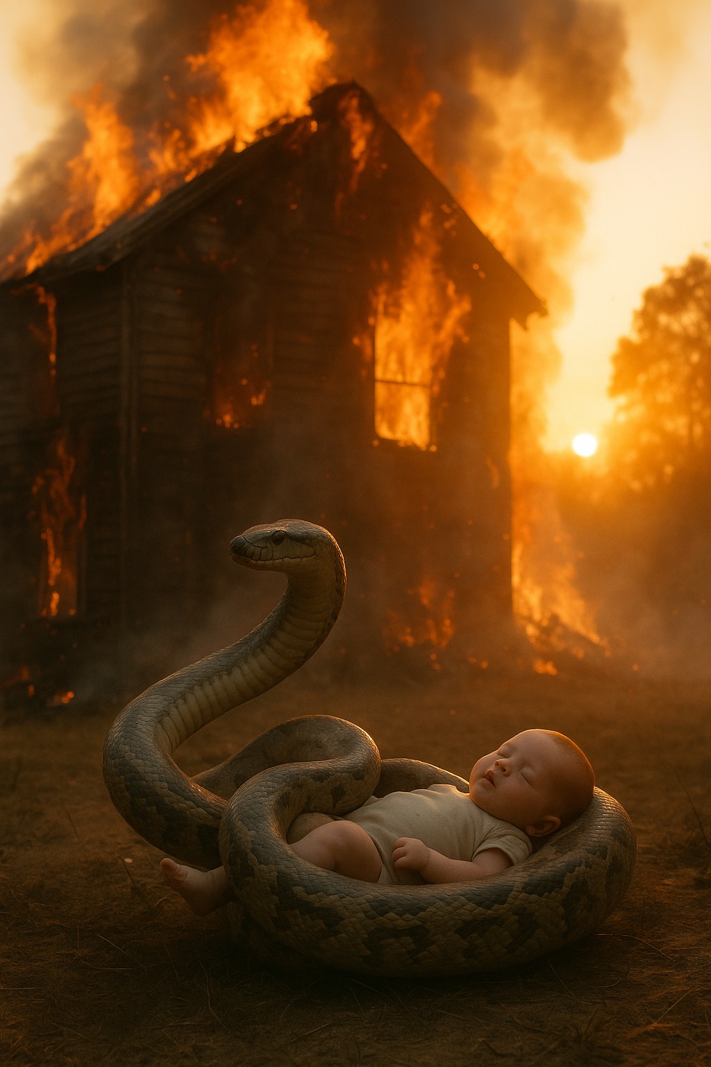Ispuzala je ispod zapaljenog poda, kliznula pravo ka dečjoj kolevci gde se beba tresla pod plamenom.