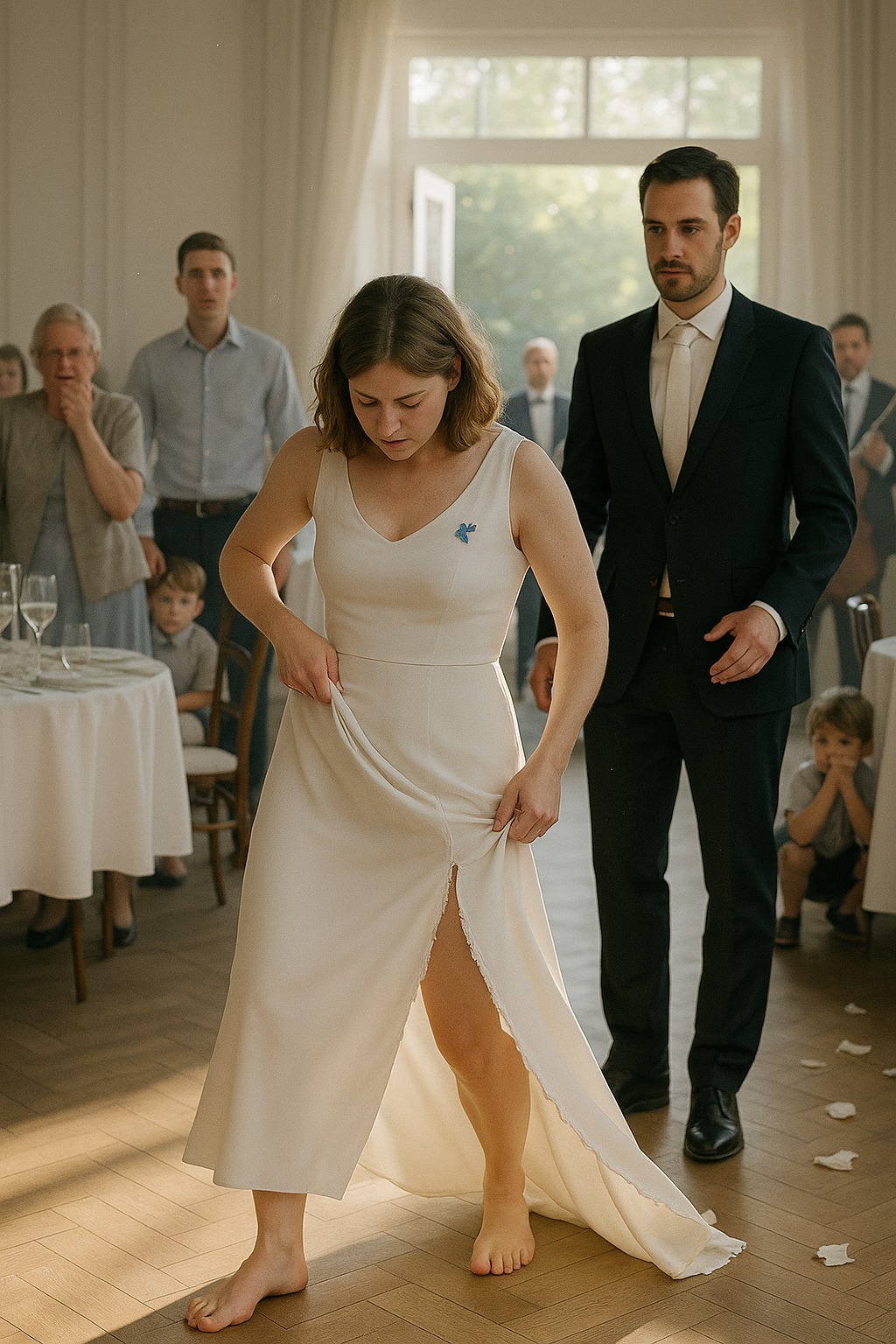 Stajala je pored stola u dugoj beloj haljini, nepomična kao statua. Gosti su se smejali, neko je nazdravljao, neko snimao telefonom. Samo je mladoženja primetio da joj se ruke tresu.