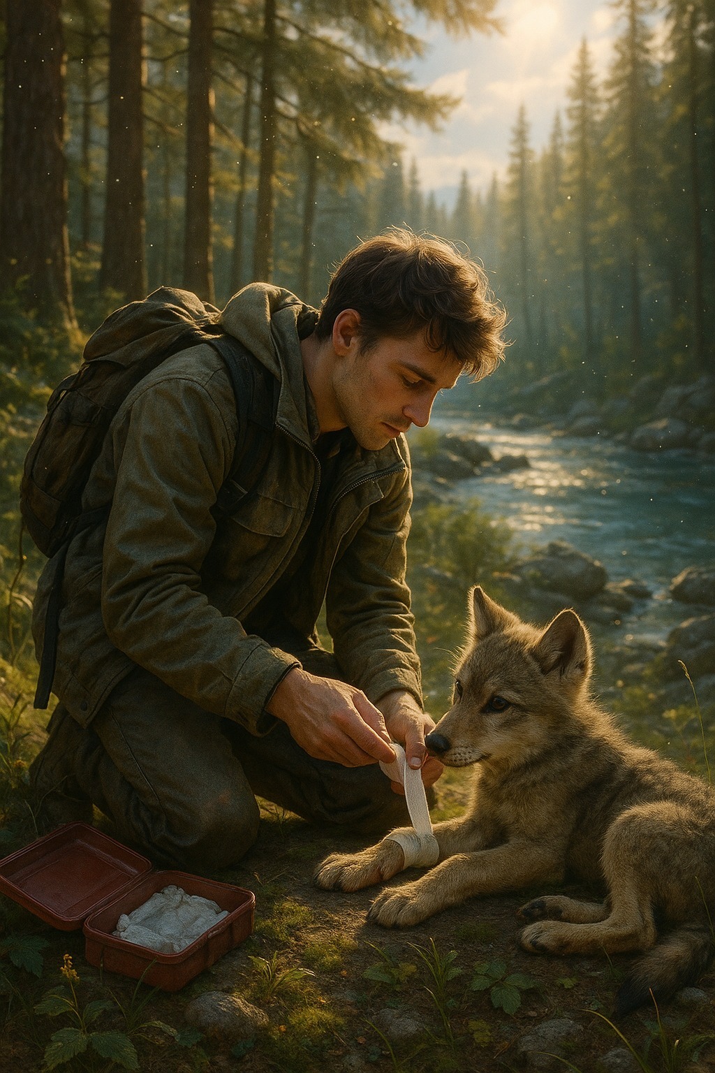 Na planinarenju sam pronašao ranjenog vuka i previo mu šapu.