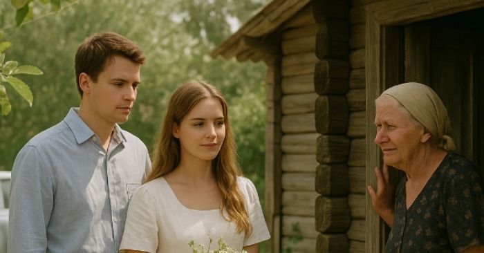 Prvi je izašao mladić — visok, u svetloj košulji, pomalo stidljiv. Za njim — devojka, vitka, svetlokosa, s buketom poljskih belih rada u rukama. Pogledala je oko sebe, kao da pokušava da se seti da li je već bila ovde. U vazduhu je mirisalo na jabuku i topao prah, negde iza šupe lajao je pas.
