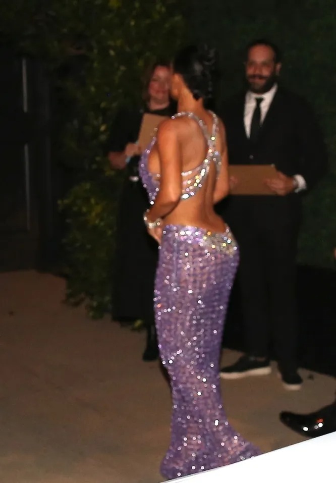 Paparaci su uslikali i Kim Kardašijan, ćerku slavljenice. Nosila je svetlucavu haljinu otvorenih leđa — stajling koji je odmah postao jedna od glavnih tema večeri.
