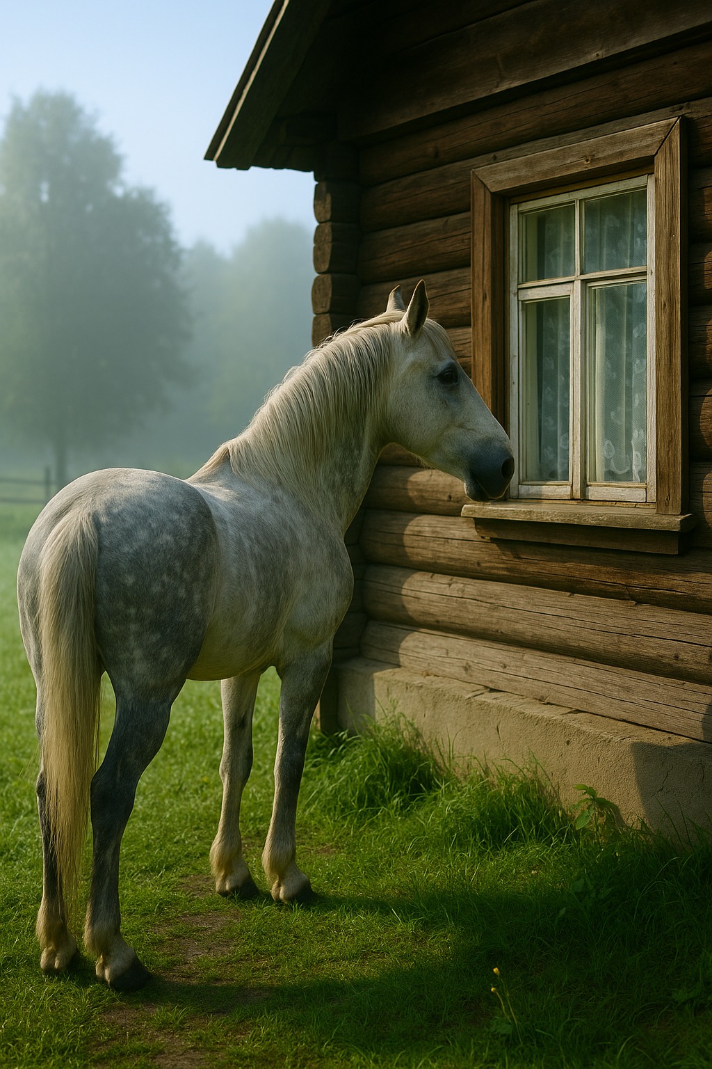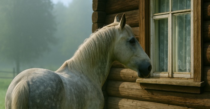 Po putu, koji je još uvek blistao od rose, išao je muškarac i odjednom primetio — pored stare kuće stajala je kobila.
