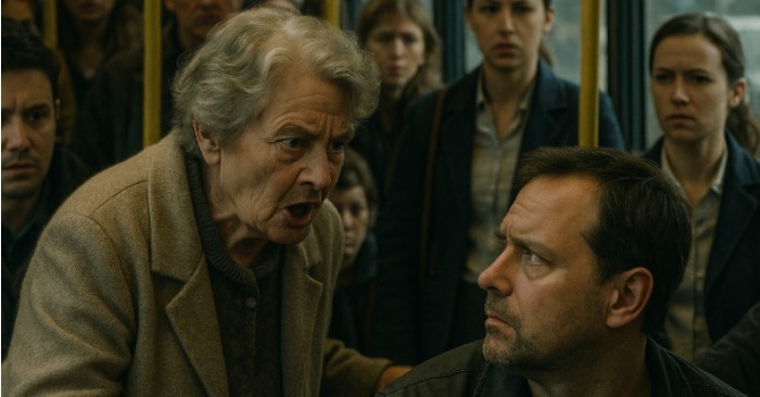 Muškarac je pocrveneo, spustio pogled i tiho ustao. Bez reči je ponudio mesto starici. Dečak, zadovoljan, uhvatio ga je za ruku.