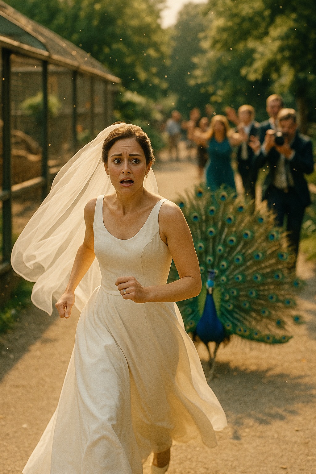 Haljina je blistala između kaveza, veo se vijorio, a paun je trčao za njom, ne odstupajući ni korak.