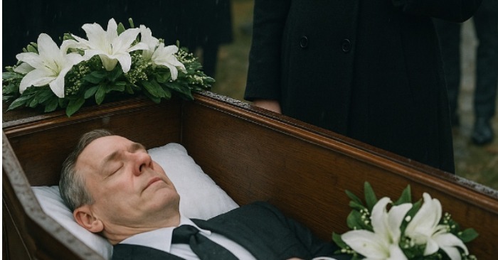 Nije plakala — samo je gledala mokru zemlju i vence sa hladnim natpisima.